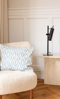 Die Tischlampe kann vorteilhaft mit anderen Lampen der Decor Drums-Serie kombiniert werden, um ein einheitliches Erscheinungsbild in der Einrichtung zu schaffen.