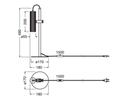 Masse: H49 x B17 x T18 cm, Schirm: H20 x Ø5,5 cm