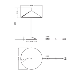 Masse: H40 x D20 cm, Basis: Ø15 cm, Schirm: Ø35 x H52 cm