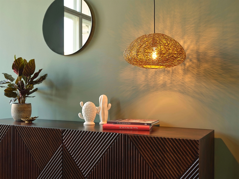 Eine dekorative Pendelleuchte, die Ästhetik, Funktionalität und verantwortungsbewussten Materialeinsatz vereint - perfekt für Sie, die ein warmes und persönliches Licht im Zuhause wünschen.