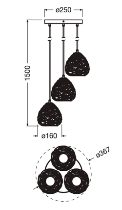 Maße: Ø36,7 cm, Schirme: Ø16 cm