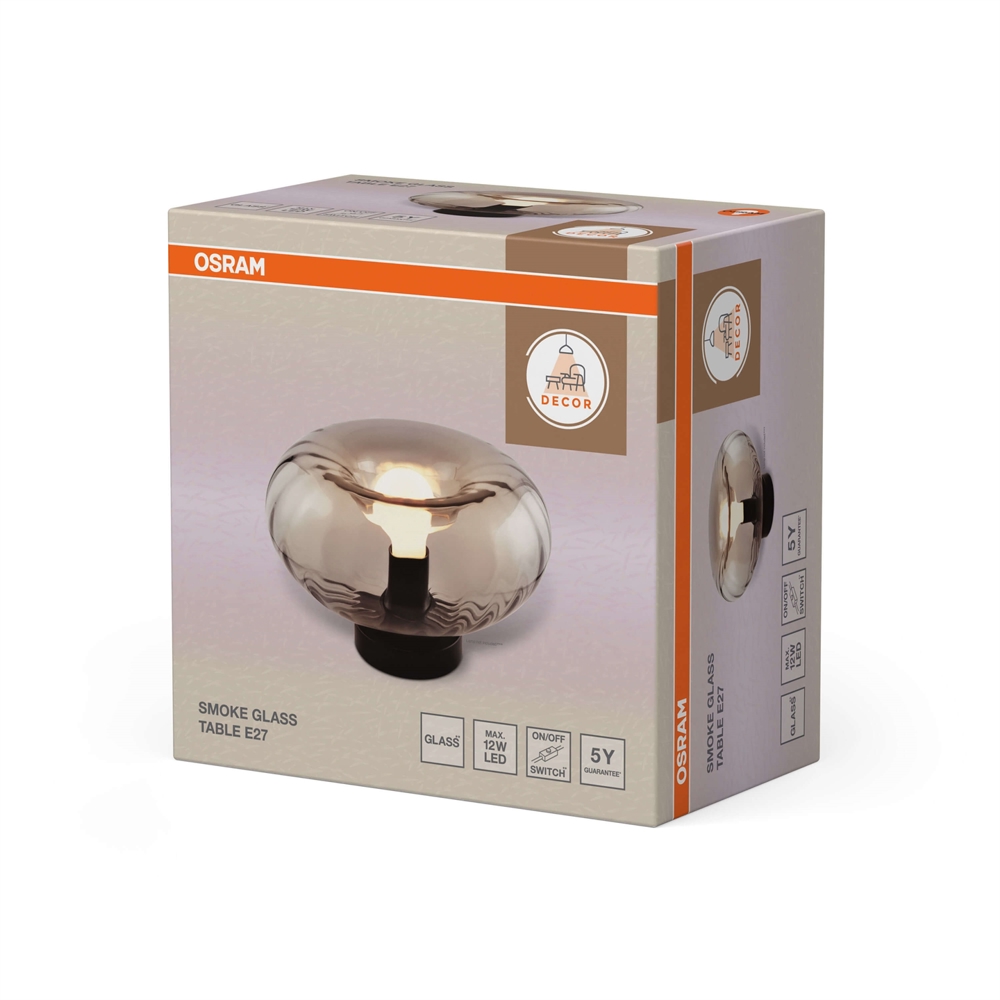 Osram Decor Smoke Glass Tischlampe mit rauchfarbenem Glasschirm und schwarzem Sockel