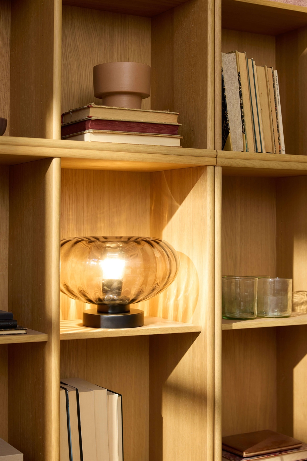 Die Lampe ist perfekt auf einem Regal oder Tisch im Wohnzimmer, Schlafzimmer oder Flur. Der schwarze Stahlsockel unterstreicht das stilvolle Aussehen der Lampe und macht sie leicht in sowohl moderne als auch klassische Einrichtungen integrierbar. Die E27-Fassung bietet große Freiheit bei der Wahl der Lichtstärke und Farbtemperatur der Lichtquelle.