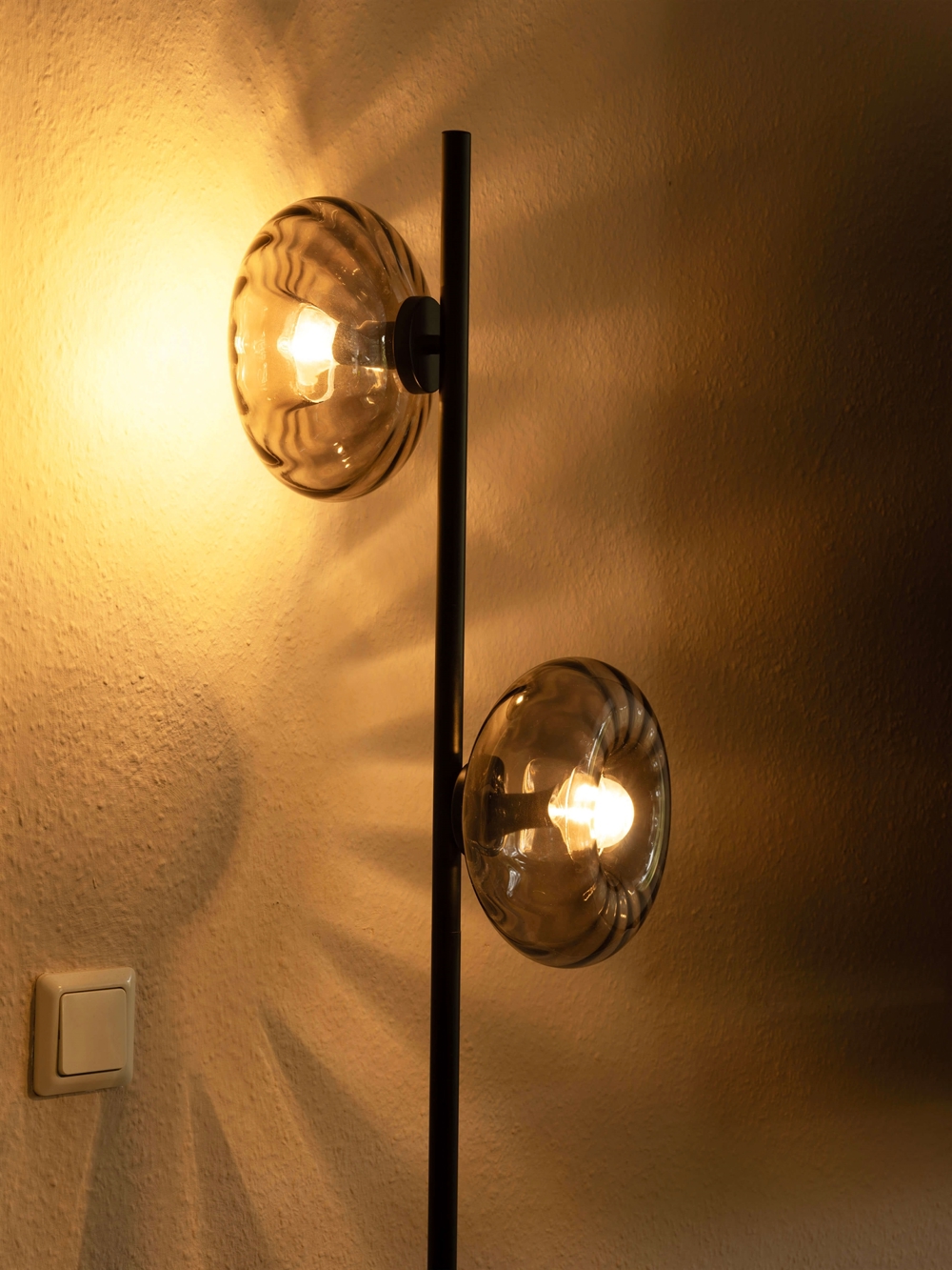Die Stehleuchte Decor Smoke Glass kombiniert elegantes modernes Design mit einer warmen und stimmungsvollen Beleuchtung. Das charakteristische rauchfarbene Glas der Lampe erzeugt ein weiches und angenehmes Licht, das einen exklusiven und einladenden Ausdruck verleiht.