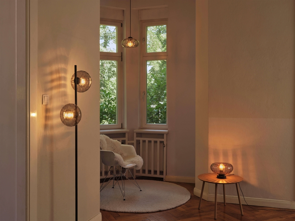 Decor Smoke Glass ist als Pendelleuchte, Tischleuchte und Stehleuchte sowie als Wandlampe/Deckenleuchte erhältlich. Die stilvollen Lampen der Serie sind mit Fokus auf Design, Flexibilität und Atmosphäre geschaffen und können vorteilhaft kombiniert werden, um ein einheitliches Einrichtungskonzept zu schaffen.