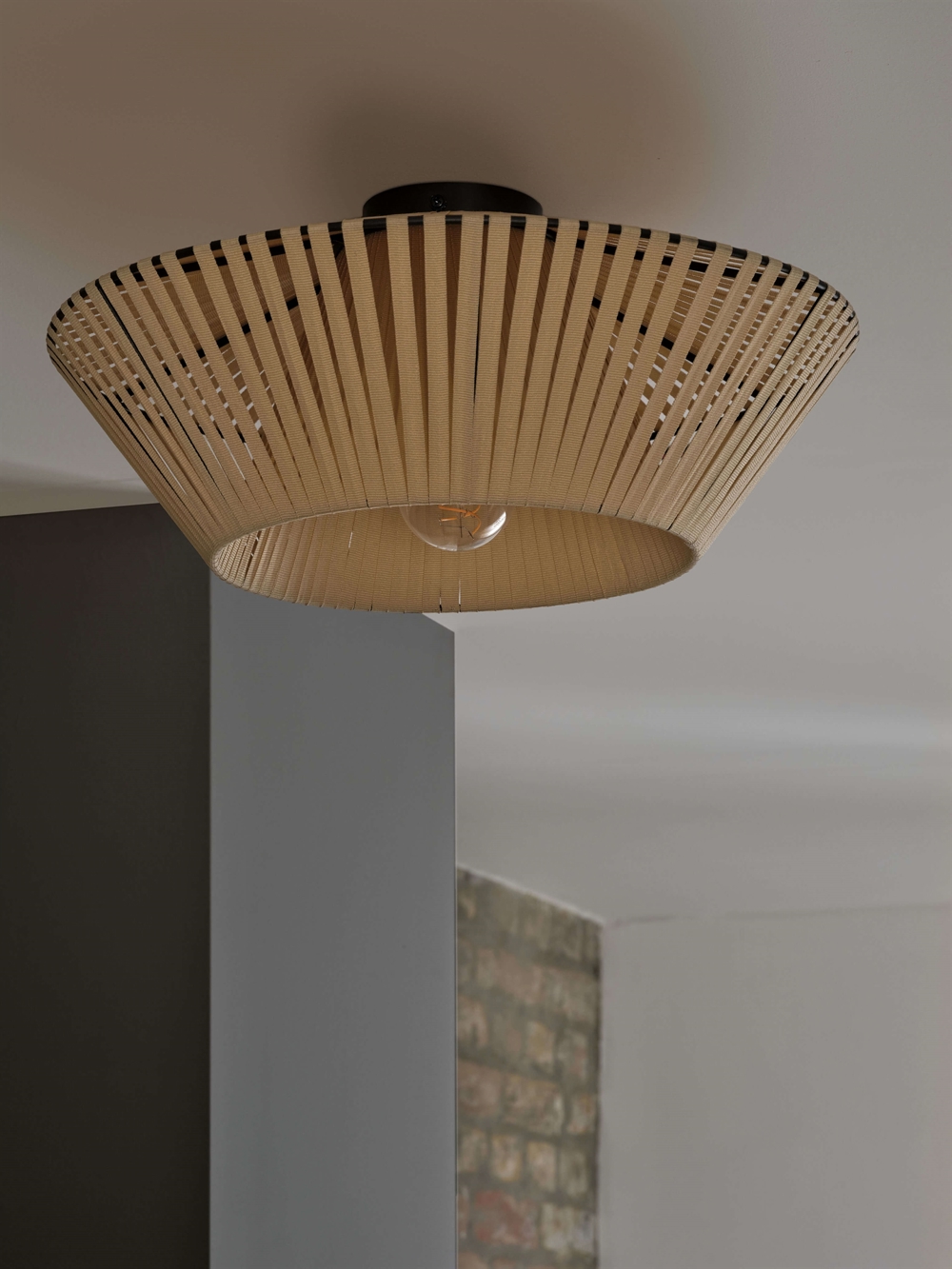 Die Deckenleuchte kann vorteilhaft mit anderen Lampen der Decor Stripes-Serie kombiniert werden, um ein einheitliches Erscheinungsbild in der Einrichtung zu schaffen. Die Lampenserie ist in Beige oder Dunkelgrau erhältlich.