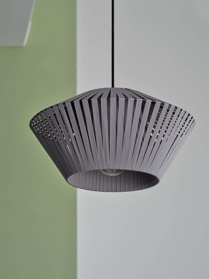 Die Pendelleuchte ist in zwei Größen erhältlich, die sich vorteilhaft mit anderen Lampen der Decor Stripes-Serie kombinieren lassen, um ein einheitliches Erscheinungsbild in der Einrichtung zu schaffen. Die Lampenserie ist in Beige oder Dunkelgrau erhältlich.