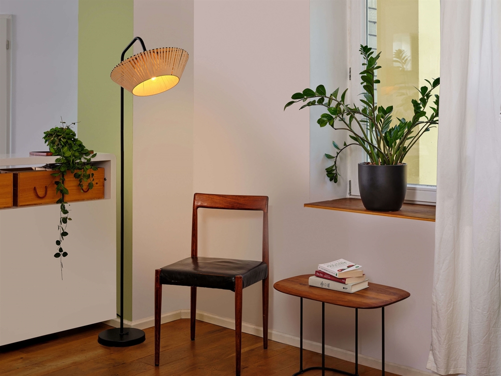 Die Stehlampe kann vorteilhaft mit anderen Lampen der Decor Stripes-Serie kombiniert werden, um ein einheitliches Einrichtungskonzept zu schaffen. Die Lampenserie ist in Beige oder Dunkelgrau erhältlich.
