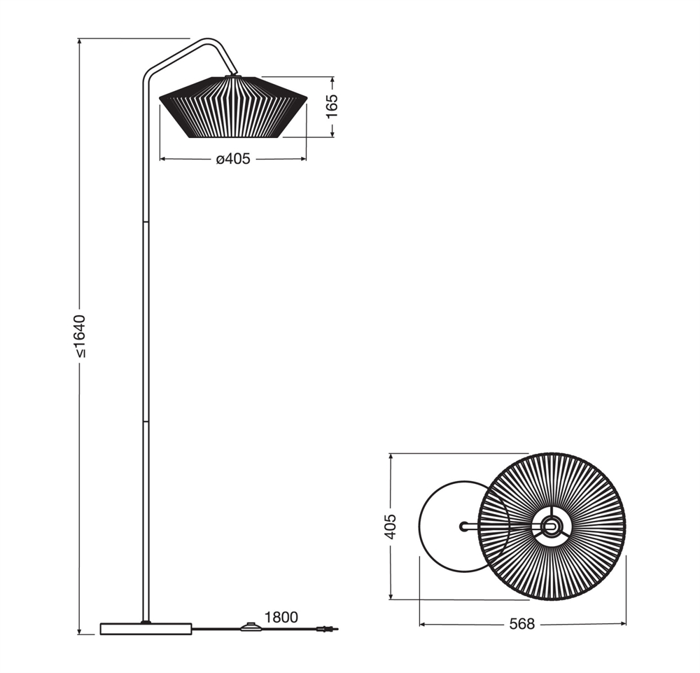 Masse: H164 x D56,8 cm, Schirm: Ø40,5 x H16,5 cm