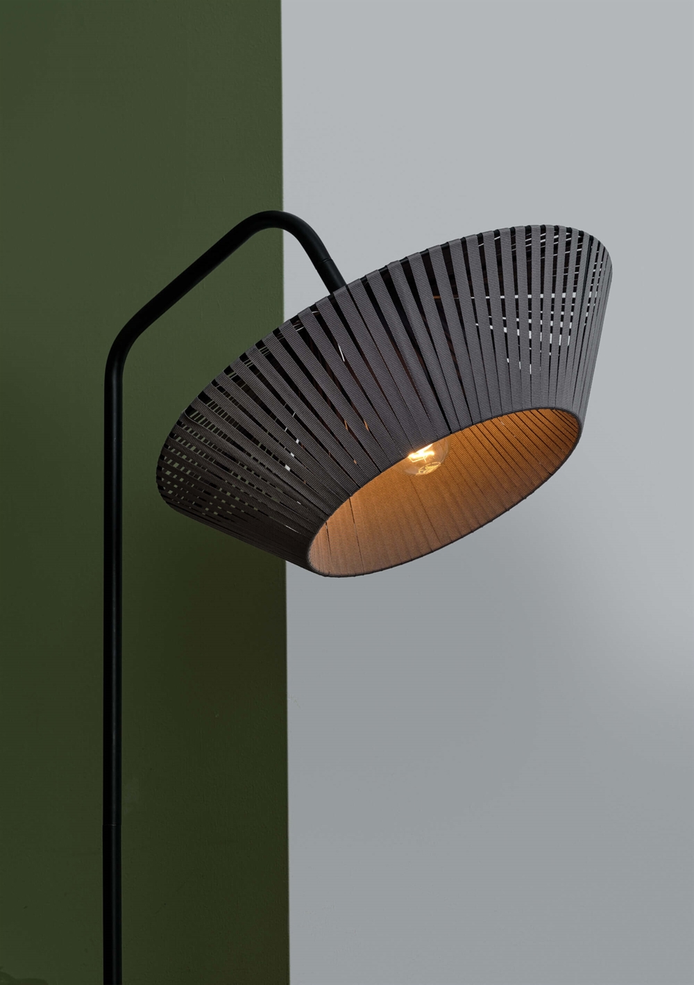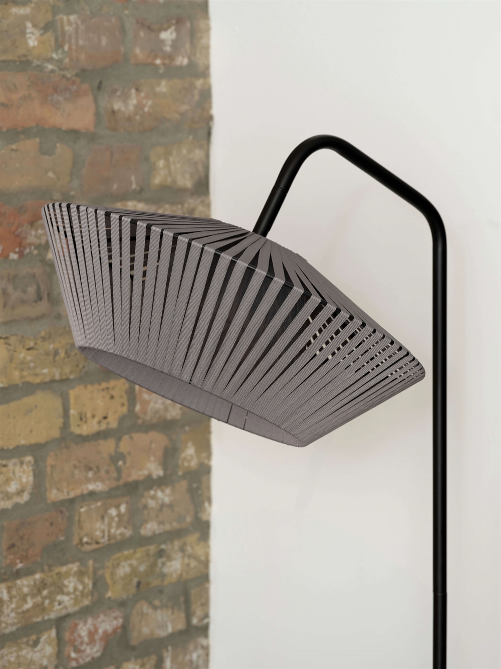 Die Stehlampe kann vorteilhaft mit anderen Lampen der Decor Stripes-Serie kombiniert werden, um ein einheitliches Einrichtungskonzept zu schaffen. Die Lampenserie ist in Beige oder Dunkelgrau erhältlich.
