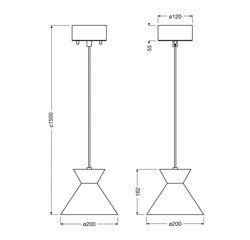 Maximale Höhe von der Decke: 150 cm