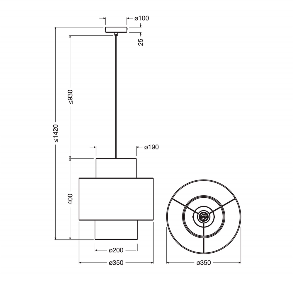 Maximale Höhe von der Decke: 142 cm