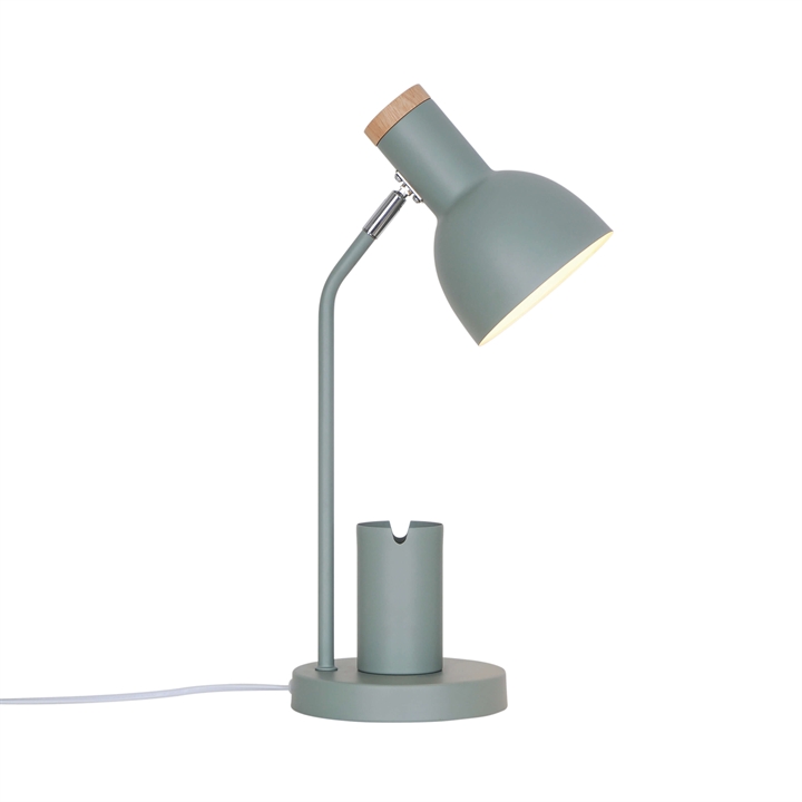 Die Tischlampe Devone mit integriertem Stauraum für Stifte oder Halter für ein Telefon ist die perfekte Schreibtischlampe für das Kinderzimmer. Mit einem coolen Mix aus Metall und FSC-zertifiziertem Holz hat Devone ein schönes Design mit einem flexiblen Lampenkopf, der um 150° geneigt und um 320° gedreht werden kann. Funktionelle und praktische Lampe für den Schreibtisch mit gutem Leselicht und smarten Details.