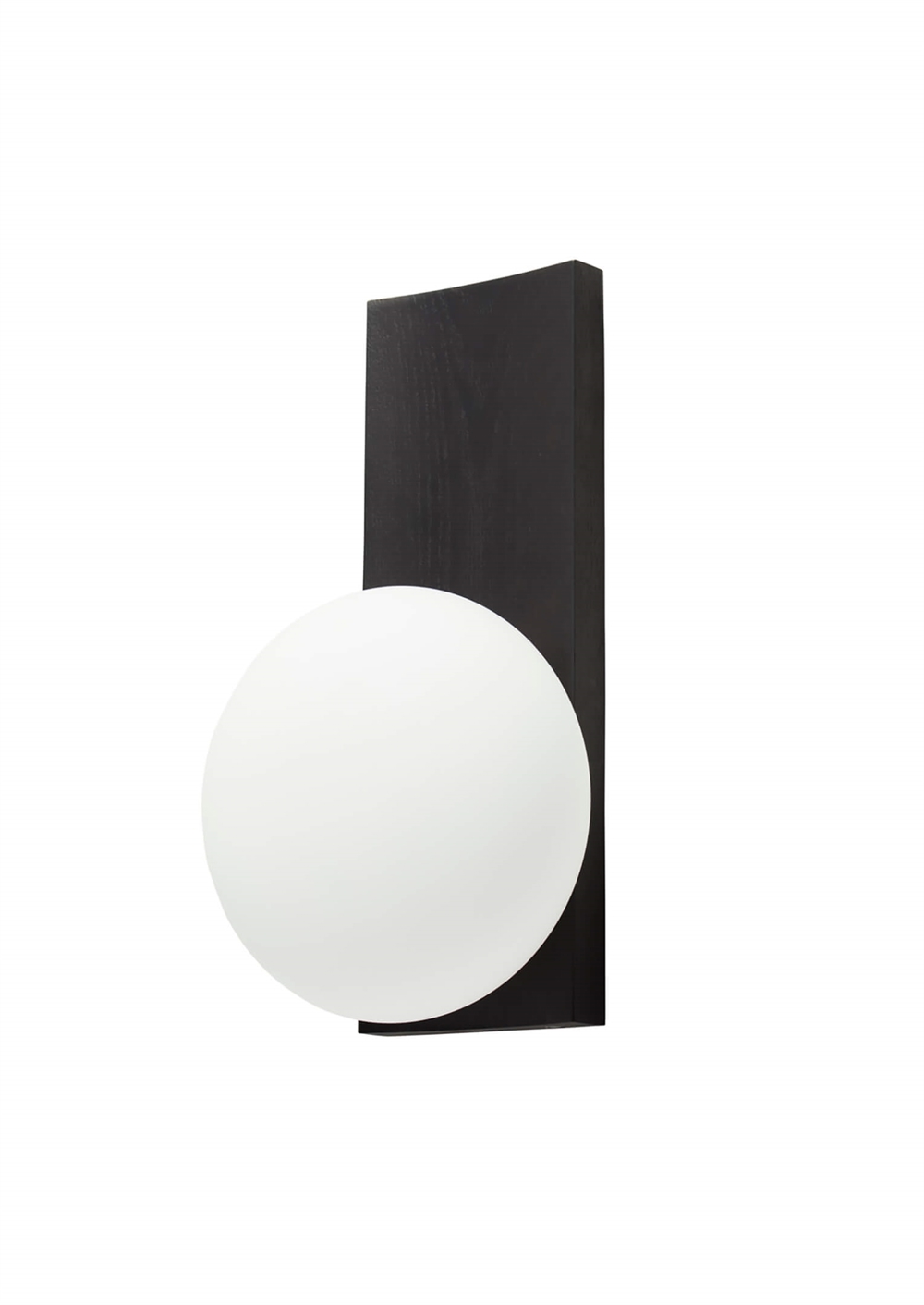 Woud Dew Tischleuchte / Wandleuchte, opal/schwarz – entworfen von Saif Faisal