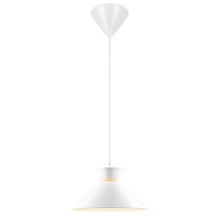 Die Dial Pendelleuchte hat ein schlichtes nordisches Design mit klaren Linien. Die Leuchte bietet ein gutes Licht im Raum, da der Schirm es ermöglicht, dass viel Licht hindurchströmt.