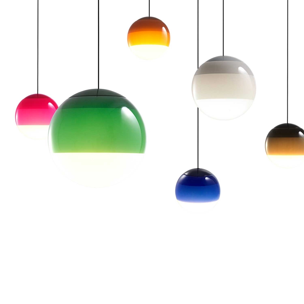 Dipping Light ist eine sehr einzigartige Lampe mit einem geblasenen Glasschirm, der dreimal in Farbe getaucht wird, was einen schönen farbenfrohen Effekt erzeugt. Dipping Light ist in vielen unglaublich schönen Farben erhältlich, die alle eine unterschiedliche Lichtstimmung erzeugen – je nachdem, welche Farbe man wählt.