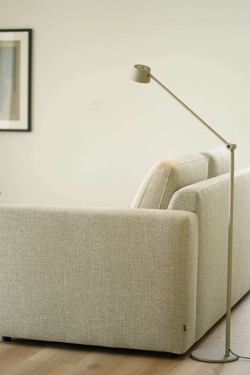 Direction F1 ist eine von zwei Stehleuchten der Direction-Serie und ermöglicht dank eines flexiblen Gelenks in der Mitte der Stange, Höhe und Winkel der Leuchte anzupassen, während der kippbare Leuchtenkopf die volle Kontrolle über die Ausrichtung des Lichts bietet. Die Helligkeit der integrierten LED-Lichtquelle lässt sich bequem über den Touchdimmer einstellen, der oben am Leuchtenkopf platziert ist. Eine naheliegende Wahl als Leselampe neben dem Sessel oder als funktionales Arbeitslicht im Büro.