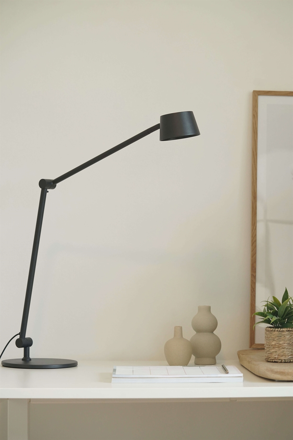 Flexible Gelenke und ein neigbarer Leuchtenkopf geben Ihnen die volle Kontrolle über die Ausrichtung des Lichts. Die Helligkeit der integrierten LED-Lichtquelle lässt sich bequem über den Touchdimmer einstellen, der oben am Leuchtenkopf platziert ist. Eine ideale Wahl als Schreibtischleuchte oder als funktionales Arbeitslicht.