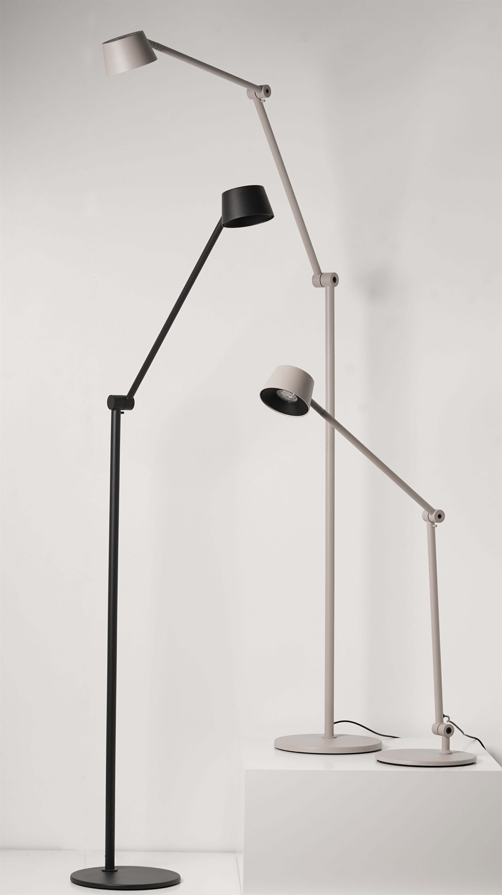 Die klare Formensprache mit dezenten, durchdachten Details hat einen industriellen Ausdruck, der durch die sichtbaren Gelenke und den schlanken Leuchtenkopf zusätzlich betont wird.