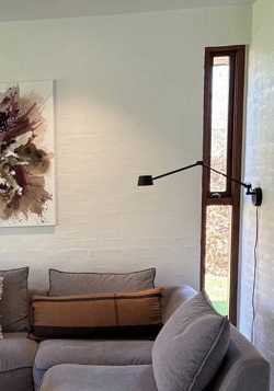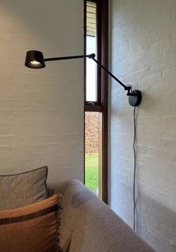 Die klare Formensprache mit dezenten und durchdachten Details hat einen industriellen Ausdruck, der durch die sichtbaren Gelenke und den schlanken Leuchtenkopf unterstrichen wird.