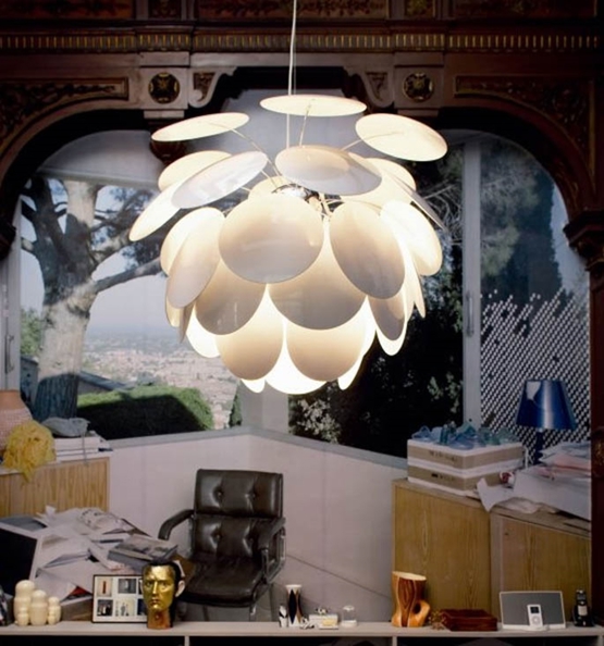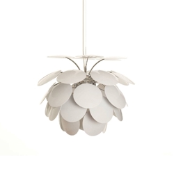 Die Leuchte besteht aus 35 Kreisscheiben aus ABS-Kunststoff, die der Leuchte einen leichten und feinen Ausdruck verleihen.