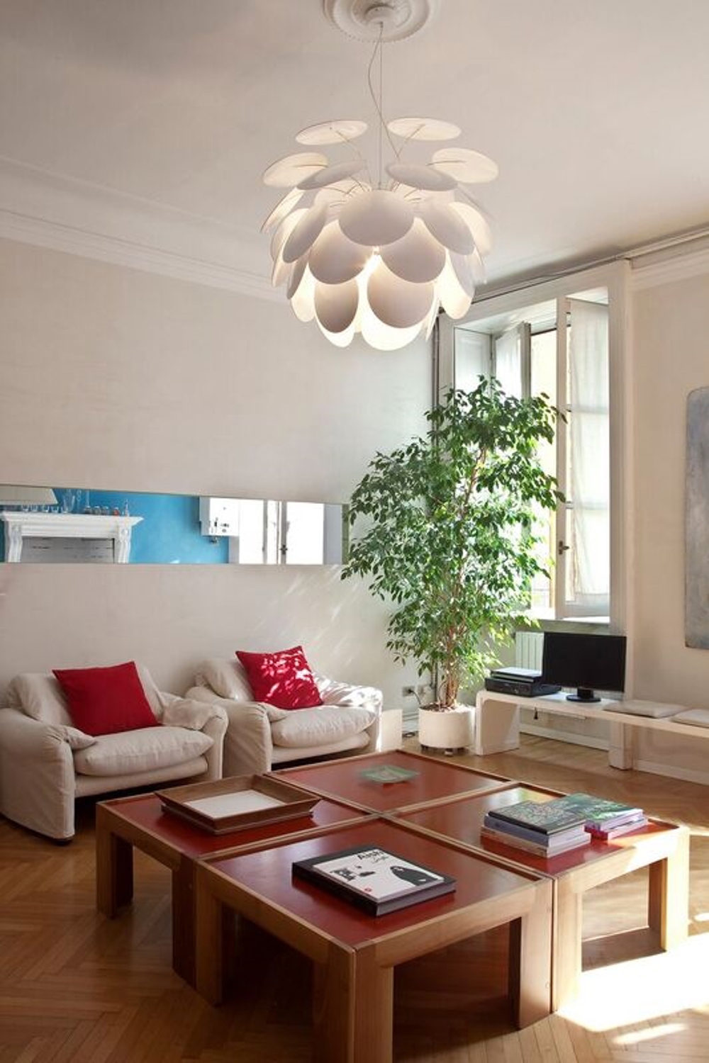 Die Discoco Pendelleuchte besteht aus 35 kreisförmigen ABS-Plastikscheiben, die Blättern ähneln. Dieses Design verleiht der Pendelleuchte einen sehr leichten Ausdruck, der sie sehr elegant macht.