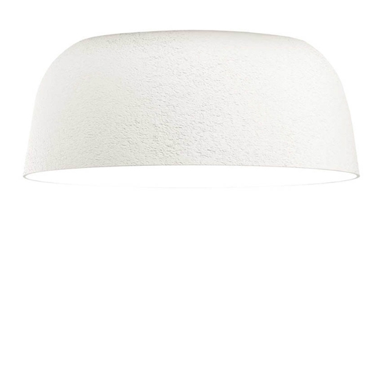 Die Außenseite der Lampe hat eine Oberfläche, die aussieht, als wäre sie aus Stein, und vermittelt dadurch einen Eindruck von schwerem Gewicht. Dies steht im Kontrast zur Innenseite der Lampe, die eine glatte, weiße Oberfläche hat, die das Licht auf schönste Weise in den Raum reflektiert.