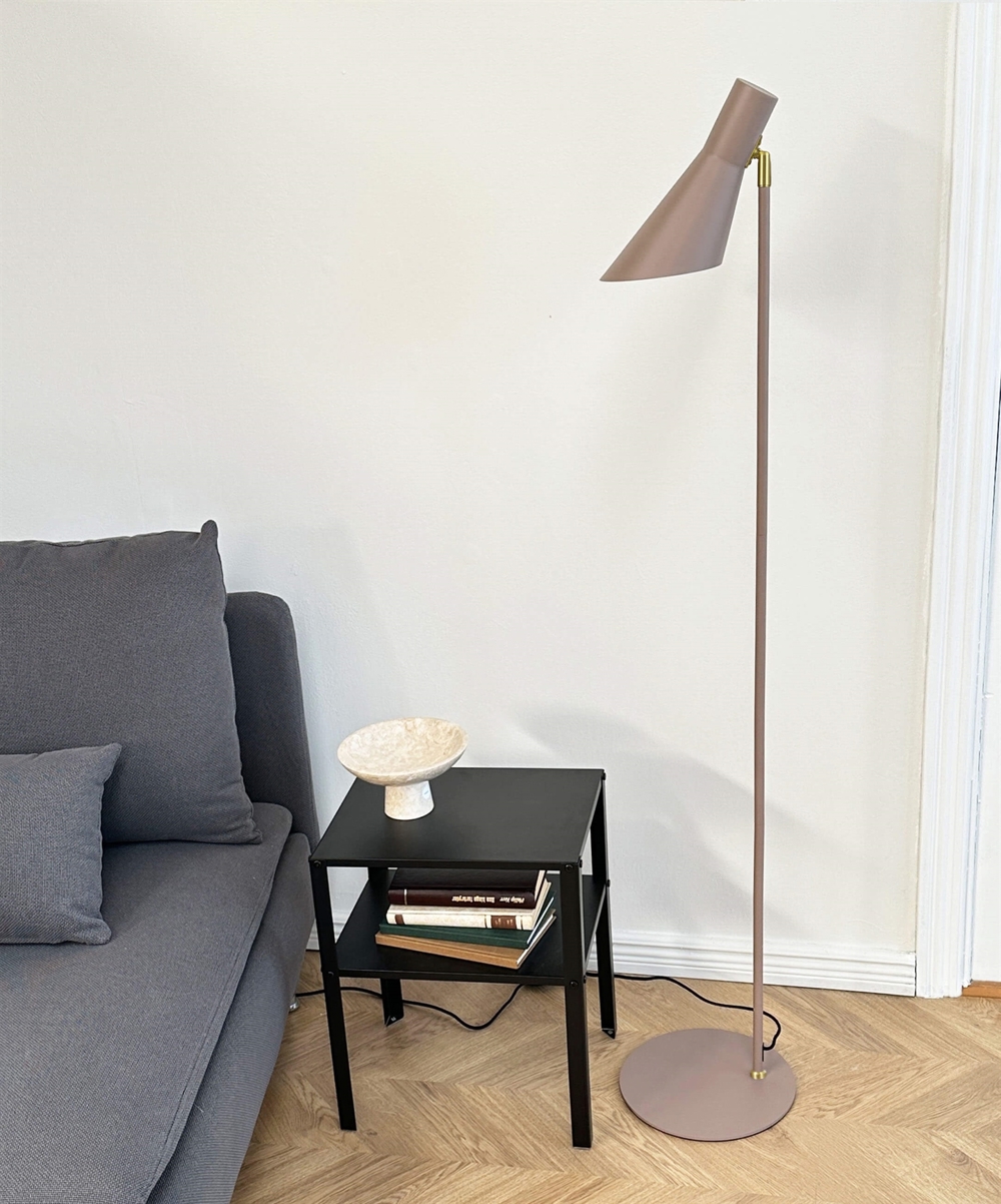 DL 12 Stehleuchte hat ein minimalistisches Design und wird mit ihrem stilvollen und funktionalen Design in Beige mit Messingdetails eine raffinierte und exklusive Ergänzung für jeden Raum sein. Der Schalter ist praktisch am Schirm platziert, der gekippt und in die gewünschte Richtung gedreht werden kann.