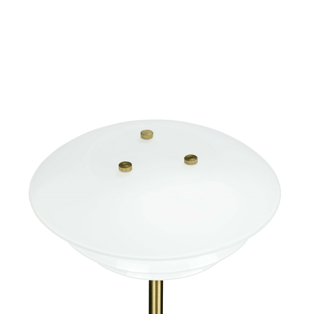 Die schöne Tischlampe hat einen eleganten 3-lagigen Schirm, der sehr dekorativ ist und gleichzeitig einen klassischen, aber einfachen Look für den minimalistischen Lebensstil bietet. Die Lampenschirme sind aus mundgeblasenem Opalglas gefertigt und das restliche Design ist aus Messing.