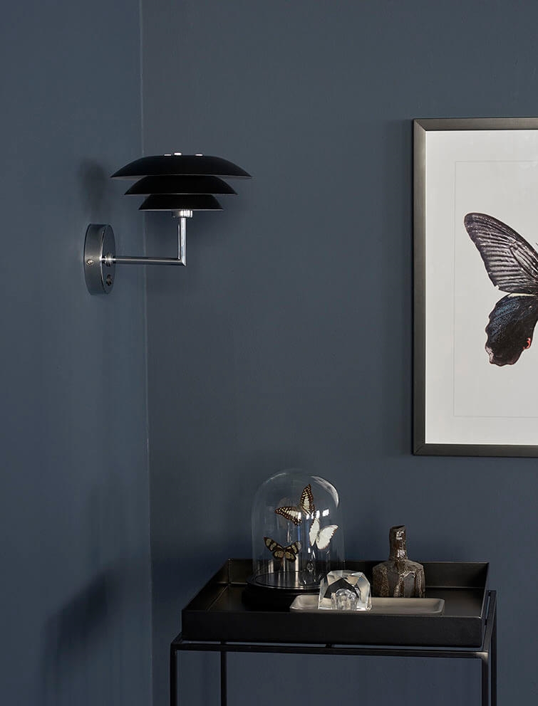 Die DL20 Wandleuchte in Schwarz verleiht Ihrer Einrichtung zeitlose Schönheit und eignet sich perfekt als Lampe in Ihrem Wohnzimmer, Schlafzimmer oder Flur. Die Wandleuchte hat drei Schirme aus schwarzem Metall in verschiedenen Größen, die für ein gemütliches, blendfreies Licht sorgen. Die schwarzen Schirme verleihen der Lampe einen eleganten Ausdruck, der zur Einrichtung Ihres Zuhauses beiträgt.