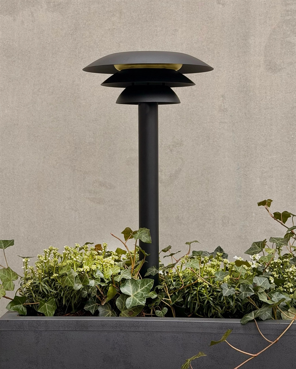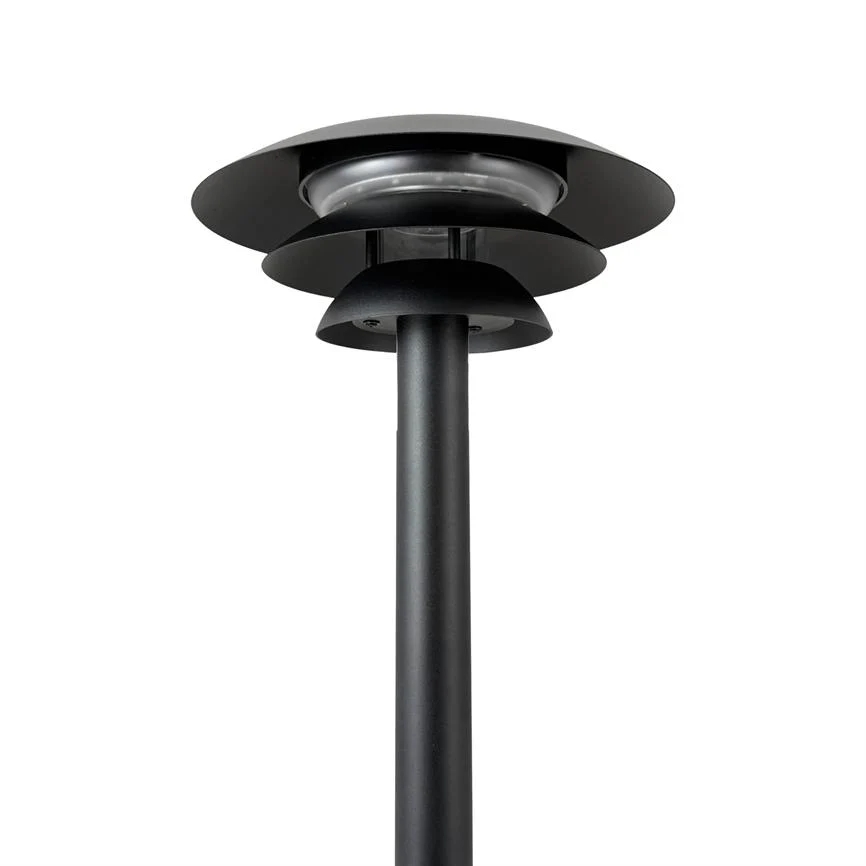 Pollerleuchte DL25 Solar ist eine klassische und stilvolle Außenleuchte, die über eine Solarzelle aufgeladen wird. Wenn die Leuchte eingeschaltet ist, sorgt ein Sensor dafür, dass sich das Licht automatisch einschaltet, wenn es dunkel wird, und ausschaltet, wenn es hell wird. Die Leuchte ist aus schwarzem Metall gefertigt und hat drei Schirme, die ein angenehmes, blendfreies Licht erzeugen. Der Erdspieß macht es einfach, die kabellose Leuchte im Garten oder in der Einfahrt zu platzieren.