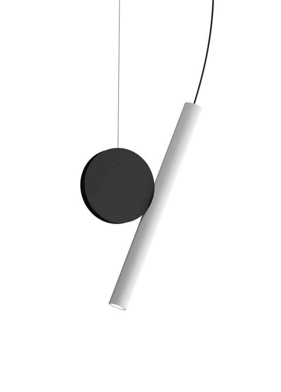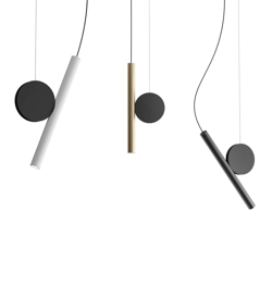 Doi ist eine dekorative Innenleuchte, die durch Schwerkraft und Magnetismus verschiedene Konfigurationen zwischen dem Schirmzylinder der Pendelleuchte und dem Gegengewicht in Form einer Scheibe oder mit dem Zusatz des Zubehörs "Pendel" annehmen kann. Mit Ihrem gewünschten Ausdruck der Pendelleuchte bestimmen Sie selbst die Richtung des Lichts.
