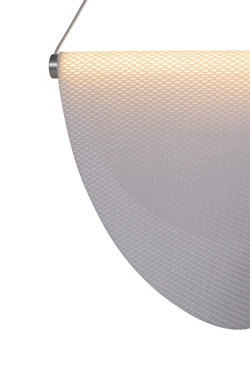 Drape Light 78 stellt die klassischen Vorstellungen von Beleuchtung in Frage. Die Struktur der Lampe mit zwei LED-Leuchtmitteln bietet einen stabilen Rahmen, während der drapierte organische Polyesterschirm durch die Schwerkraft einen fantastischen visuellen Effekt im Zusammenspiel von Licht und Schatten erzeugt.