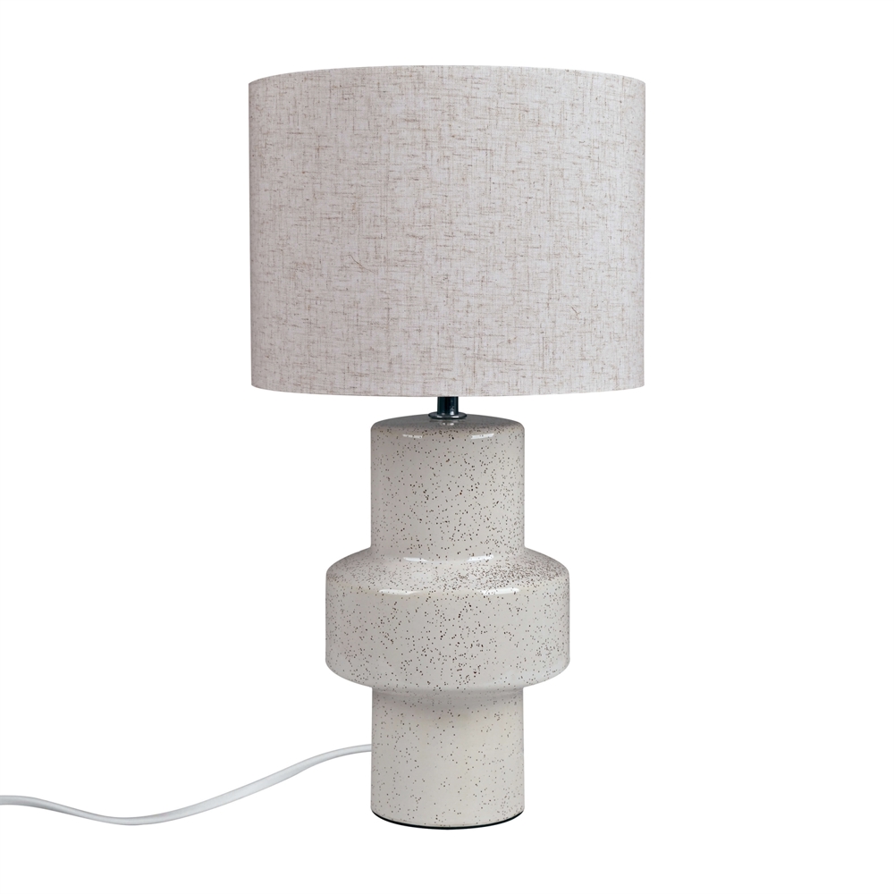 Tischlampe Dugan hat eine Basis aus glänzender Keramik und einen schönen Stoffschirm. Der elegante Materialmix und der schöne Ausdruck der Lampe schaffen eine klassische Tischlampe mit modernem Twist und weichem, warmem Licht. Verwenden Sie die Tischlampe auf einem Beistelltisch neben dem Sofa oder als dekoratives Element im Regal.