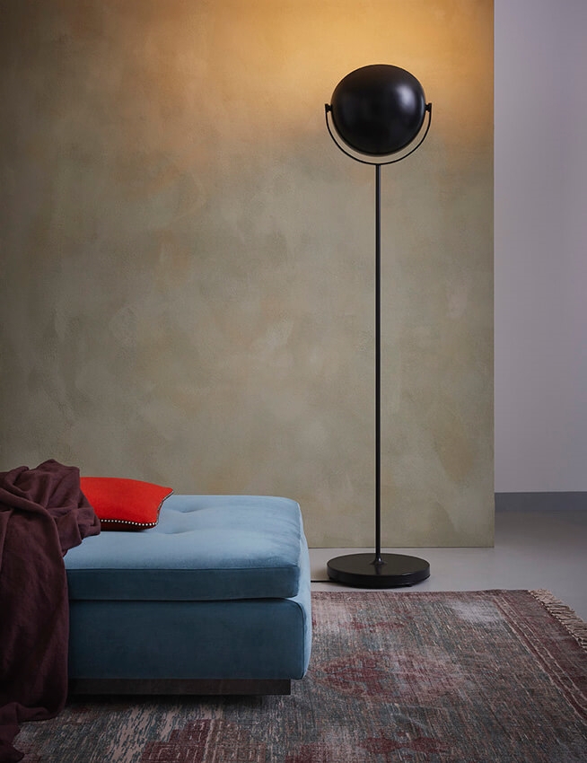Eclips ist eine atmosphärische Uplight- und Downlight-Stehlampe. Der Lampenschirm der Stehlampe lässt sich leicht verstellen, um jedem Bedarf gerecht zu werden. Die beiden Halbkugeln können sich um 360° drehen, was es ermöglicht, die gewünschte Beleuchtung zu schaffen – sowohl ein schmaler Lichtstrahl, breites Licht als auch eine vollständige Verdunkelung.