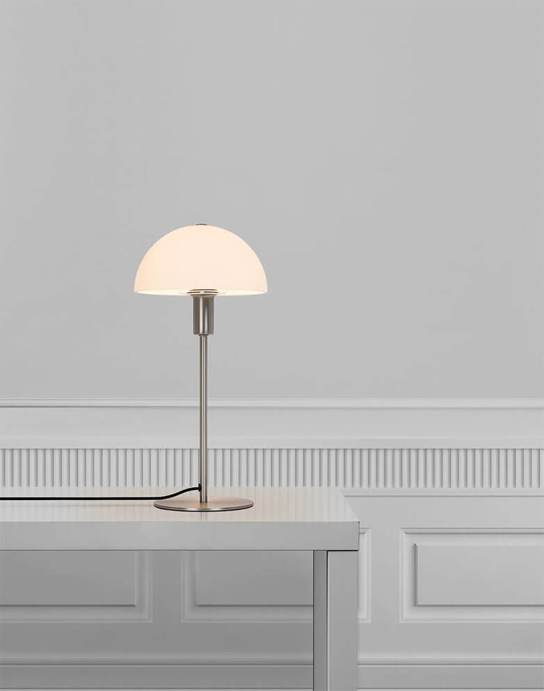 Nordlux Ellen 20 Tischlampe, gebürsteter Stahl/Opal