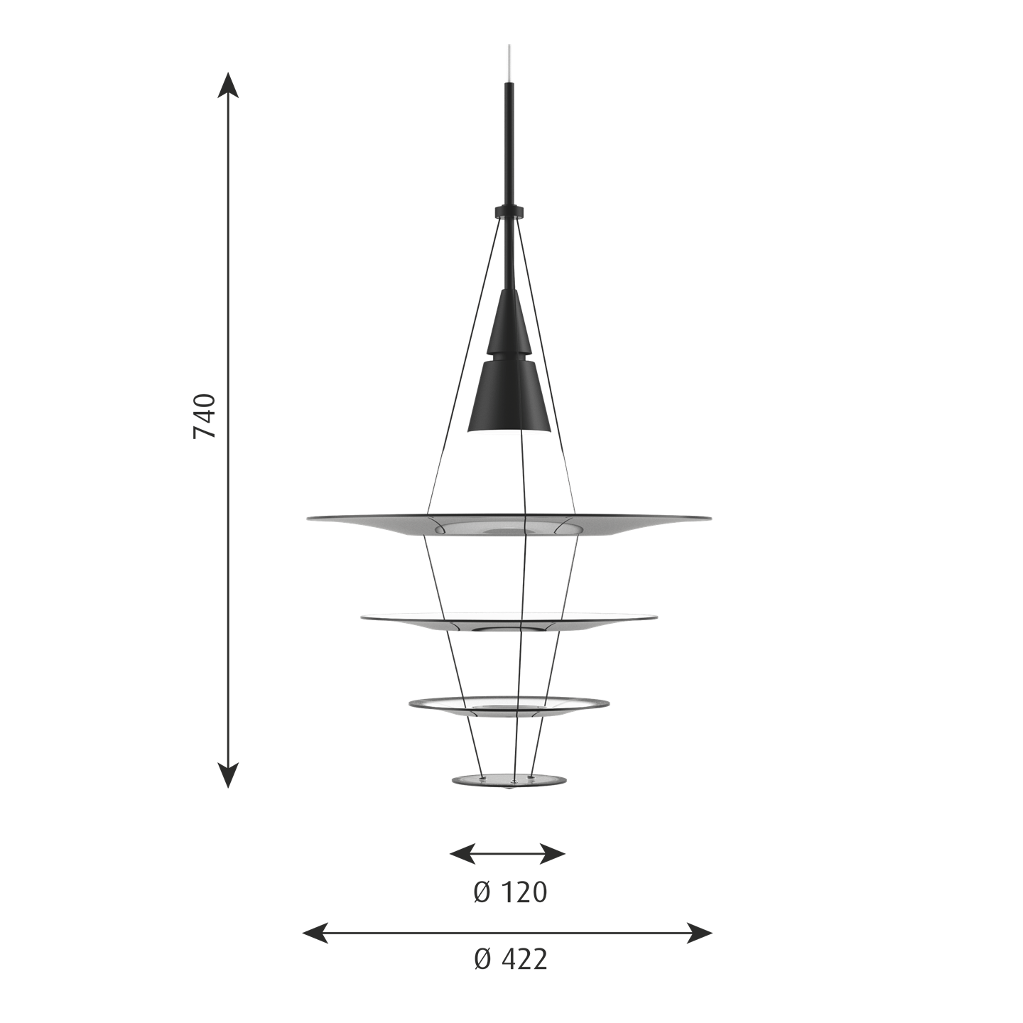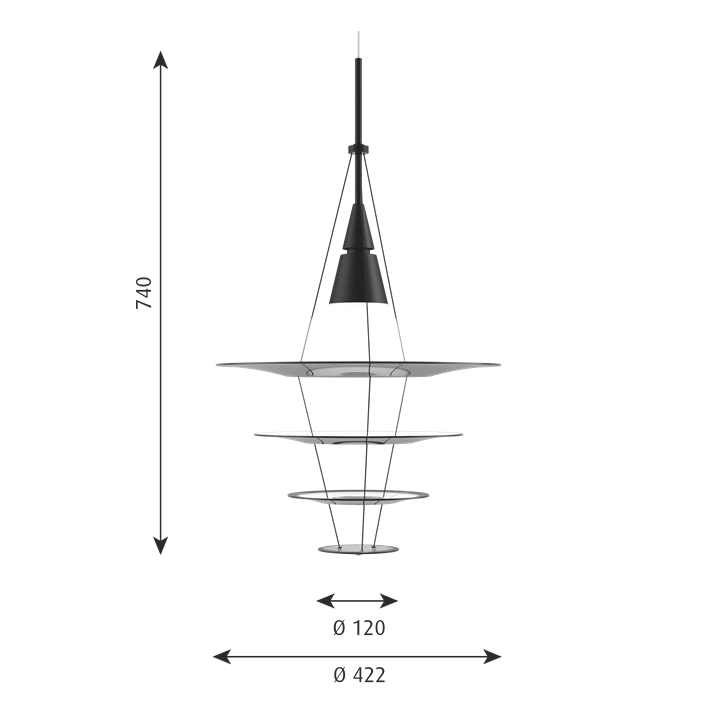 Louis Poulsen Enigma 425 Pendelleuchte, schwarz - entworfen von Shoichi Uchiyama.
