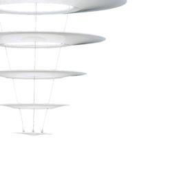Der Designer hat den klassischen Kronleuchter neu gestaltet und dünne konzentrische Kreise verwendet. Enigma bedeutet Rätsel, und die Lampe trägt diesen Namen, weil sie aus der Ferne betrachtet zu schweben scheint.