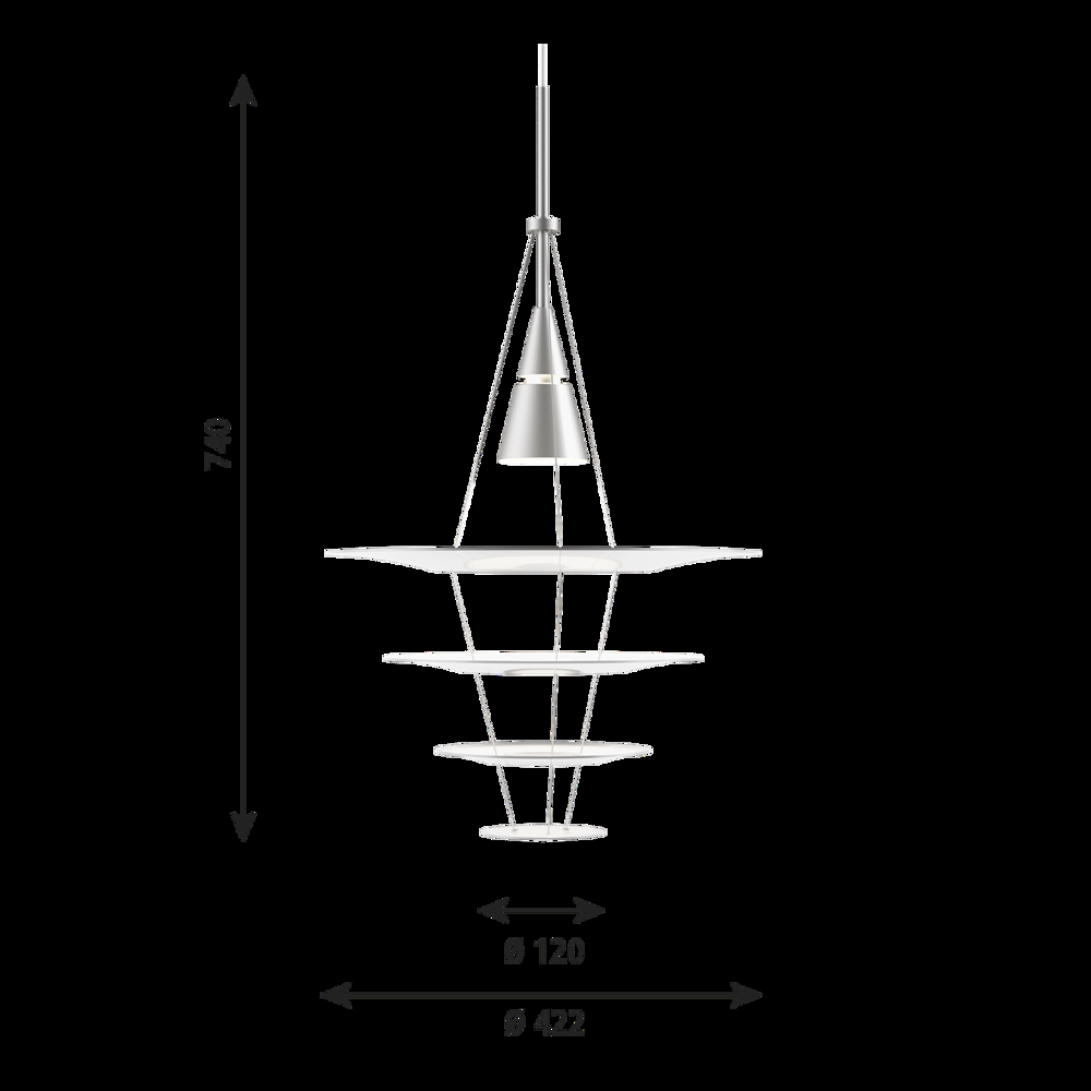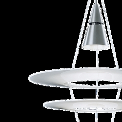 Louis Poulsen Enigma 425 Pendelleuchte, gebürstetes Alu - entworfen von Shoichi Uchiyama.