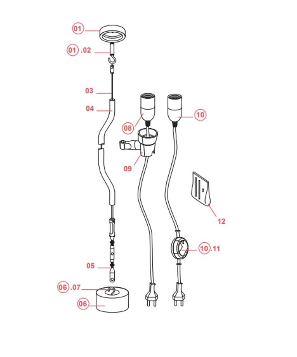 Ersatzteil: Deckenrosette mit Haken für Flos Parentesi Boden-Decken-Lampe. (Teil 01 + 02 auf Zeichnung)