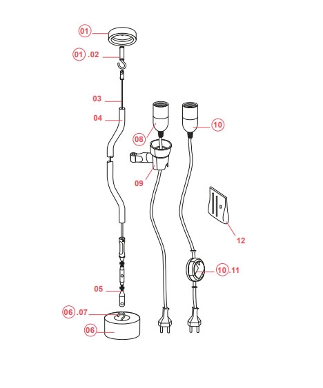 Ersatzteil: Deckenrosette inkl. Haken für Flos - Parentesi, rot