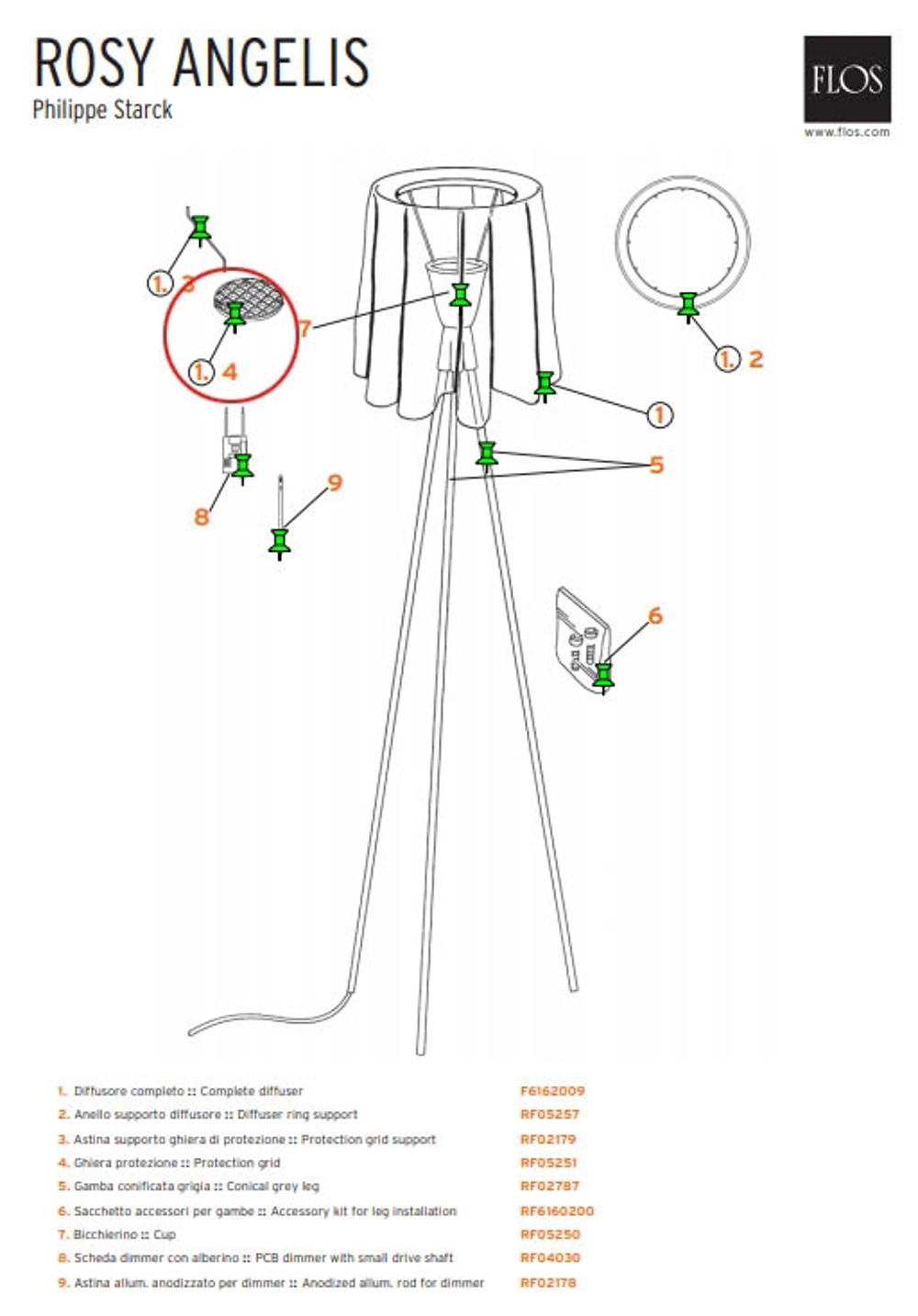 Ersatzteil: Schutzgitter für die Flos Rosy Angelis Stehleuchte, entworfen von Philippe Starck.