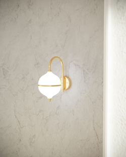 Die Wandleuchte Eternal Moonlight ist von der Mystik des Mondes inspiriert und verleiht der Einrichtung einen raffinierten Touch. Der kugelförmige Schirm aus mundgeblasenem Opalglas verbreitet ein weiches Licht und wird von einem dezenten Messingband geteilt, das den Halbmond symbolisiert.