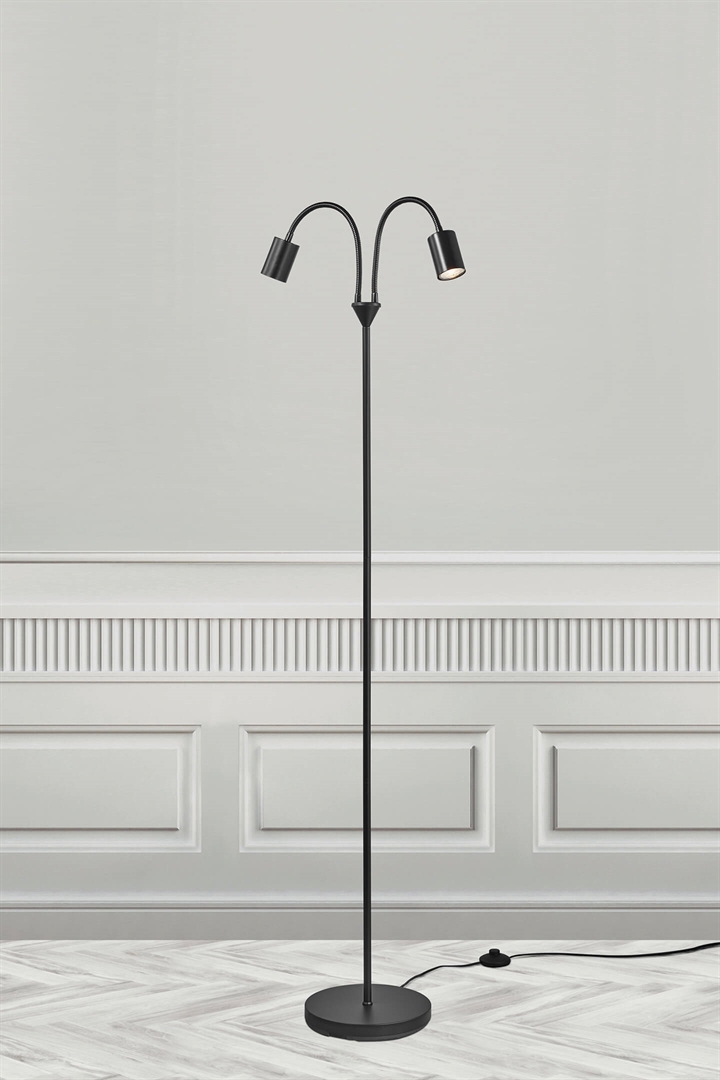 Die stilvolle, elegante und einfache Stehlampe passt in viele Einrichtungsstile und kombiniert Funktionalität mit einem schönen Design. Sie besteht aus zwei flexiblen Armen, die es ermöglichen, das Licht nach Bedarf auszurichten. Darüber hinaus ist der Lampenkopf ebenfalls verstellbar, was die Lampe zu einer unverzichtbaren Leselampe macht.