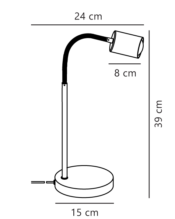 Maße: H39-55 cm, Schirm: Ø5,5 x H8 cm, Fuß: Ø15 cm