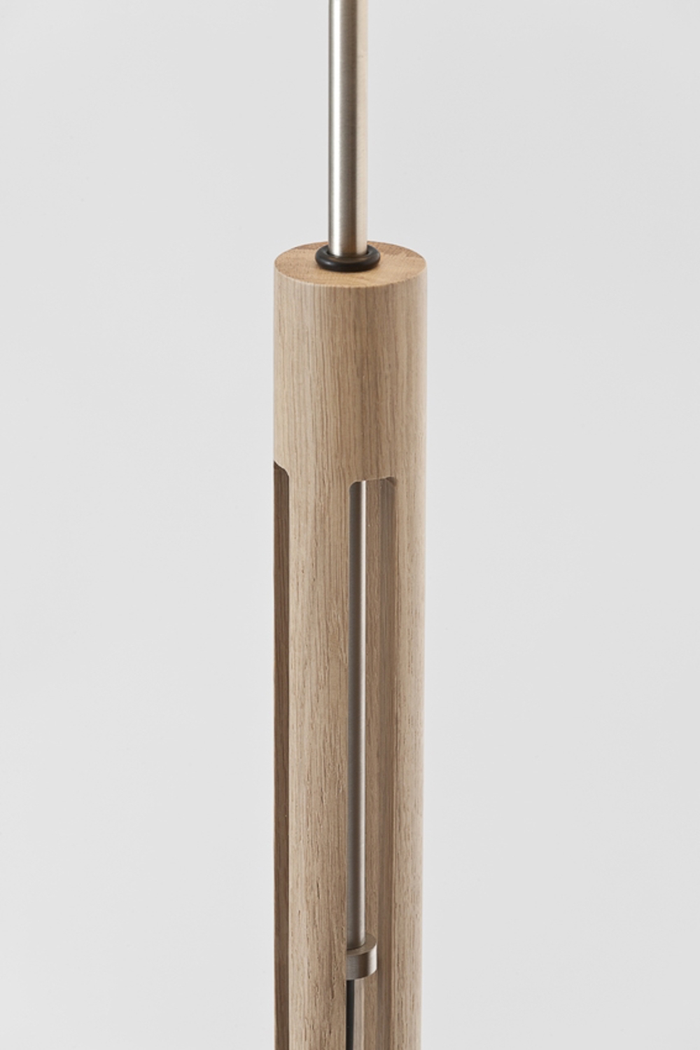 Die Fad Stehleuchte hat eine solide Eichenstruktur, zylinderförmig, einen Querschnitt und einen weißen Leinenschirm. Sehr praktische Lampe mit einstellbarer Höhe und Lichtintensität.