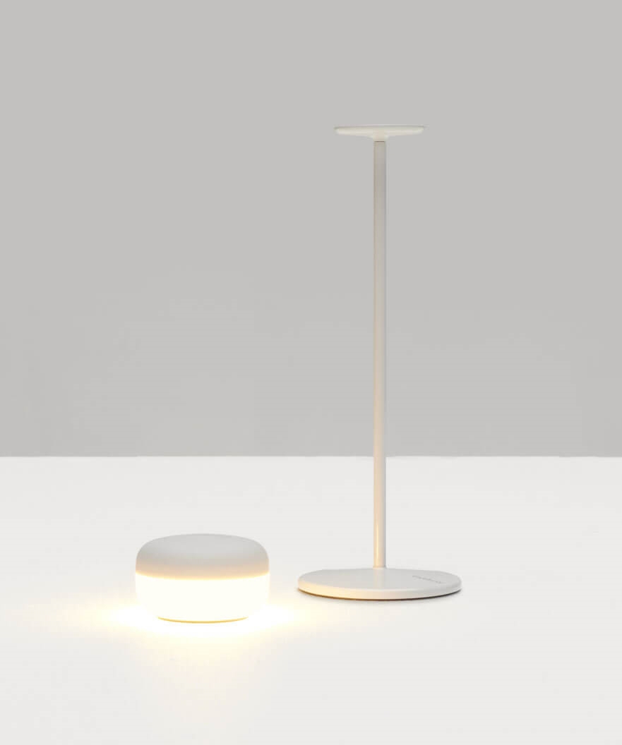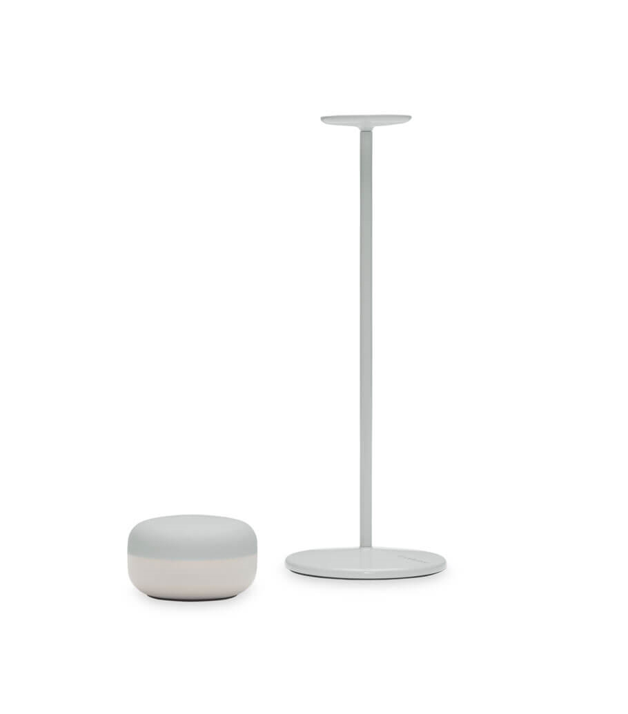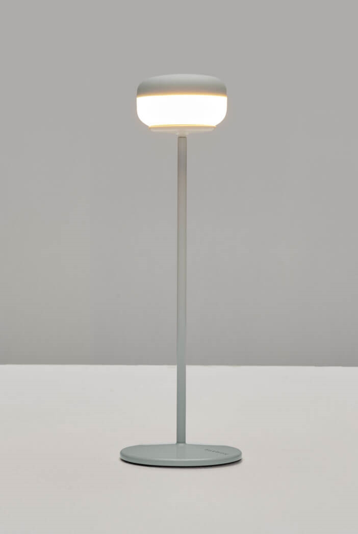 Die Cheerio Tischlampe verleiht ein zusätzliches Gefühl von Gemütlichkeit, wenn Sie sich mit Freunden oder Familie treffen. Die Batterielampe ist wiederaufladbar und kann dank des kabellosen Designs überall drinnen und draußen verwendet werden. Mit ihrem schweren Stahlfuß steht Cheerio stabil und sicher. Verwenden Sie die LED-Lampe zum Beispiel auf Ihrem Esstisch, Küchentisch, Couchtisch, Nachttisch oder draußen auf Ihrem Balkon oder im Garten.