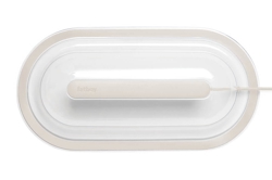 Die Wandleuchte besteht aus einem transparenten Kunststoffschirm mit LED-Lichtquelle, die auf die transparente Basis geklickt wird, nachdem sie einfach mit dem mitgelieferten doppelseitigen Klebeband oder den mitgelieferten Schrauben an der Wand befestigt wurde. Das transparente Design sorgt dafür, dass die Wandleuchte mit der Wandfarbe harmoniert. Die Lichtquelle erzeugt ein stimmungsvolles Licht, das zur Wand hin gerichtet ist. Sie ist 3-stufig dimmbar, sodass Sie die Lichtstärke selbst einstellen können. Dies tun Sie, indem Sie auf den farbigen LED-Streifen in der Mitte des Schirms drücken, wo Sie auch die Wandleuchte ein- und ausschalten.