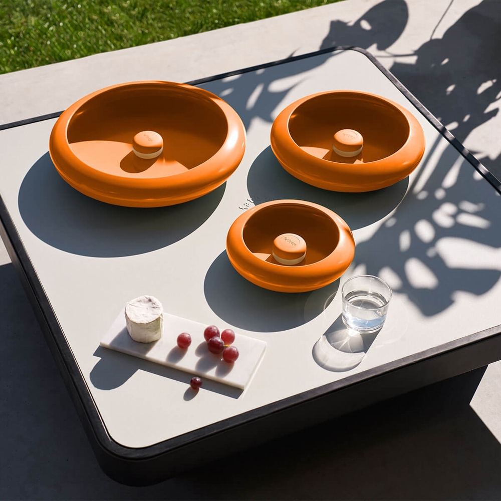 Dieses Set besteht aus den Oloha-Lampen in den drei Größen Small, Medium und Large in der Farbe sunny orange.