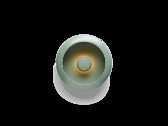 Die Akkuleuchte besteht aus einem Schirm aus beschichtetem Metall und die Lampe ist aus Silikon gefertigt. Das Licht kann stufenweise gedimmt werden, indem man sanft auf den Ring in der Mitte drückt. Die Lampe gibt ein warmes Licht ab, aber die Farbe der Lampe beeinflusst die Stimmung des ausgestrahlten Lichts.